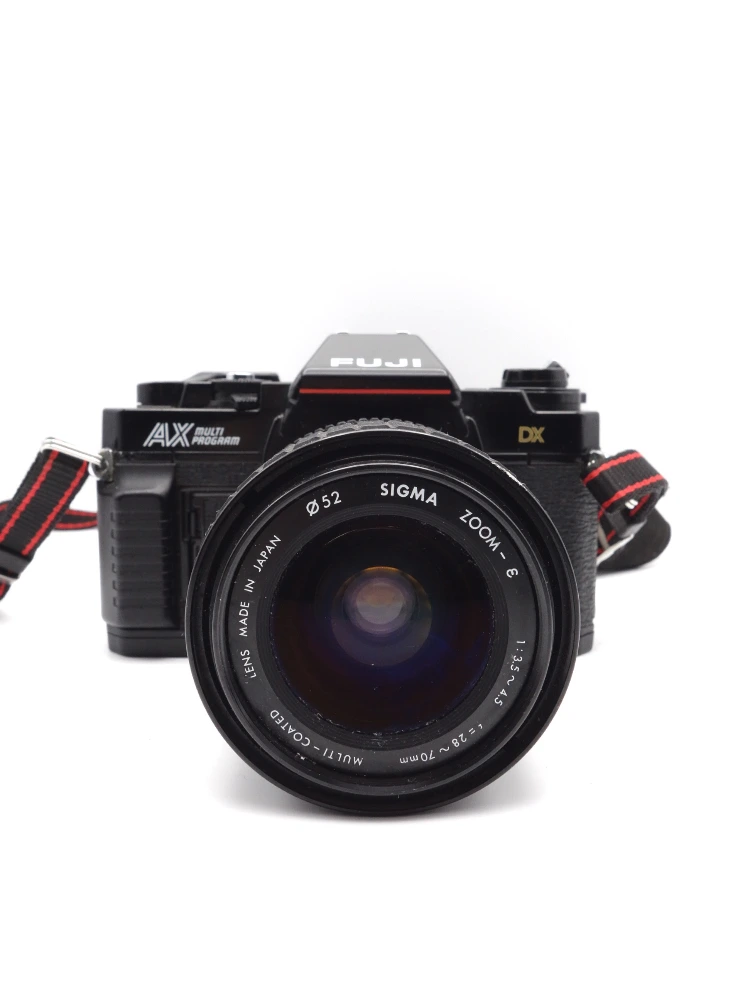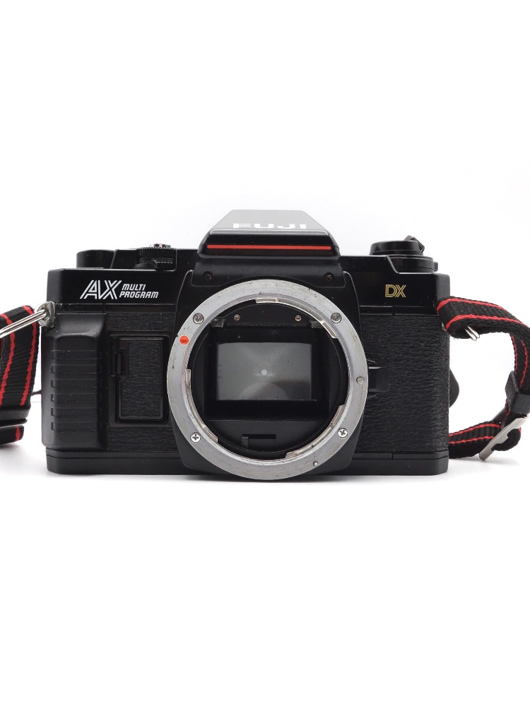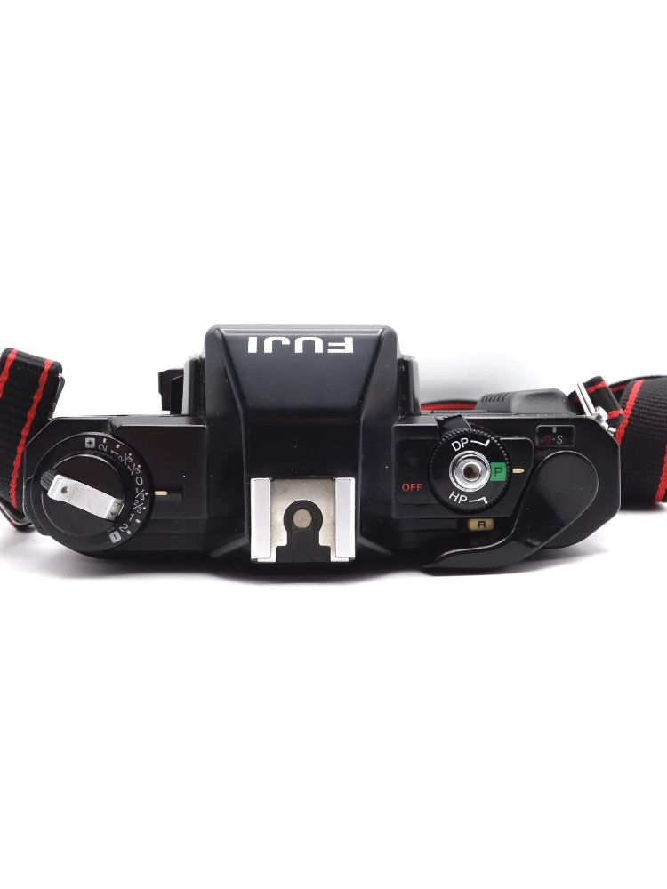 Le Fuji Multi Program est un reflex qui veut faciliter la vie. En commençant par la prise en charge du décodage DX des films. Et de l’autre, plusieurs modes “Program”, permettant une gestion totale de l’exposition. En dehors de la version classique, se trouve 2 variantes qui permettent de choisir une priorité. Ainsi, le mode HP est un Program à priorité vitesse et DP à priorité ouverture. La compensation est également de la partie.