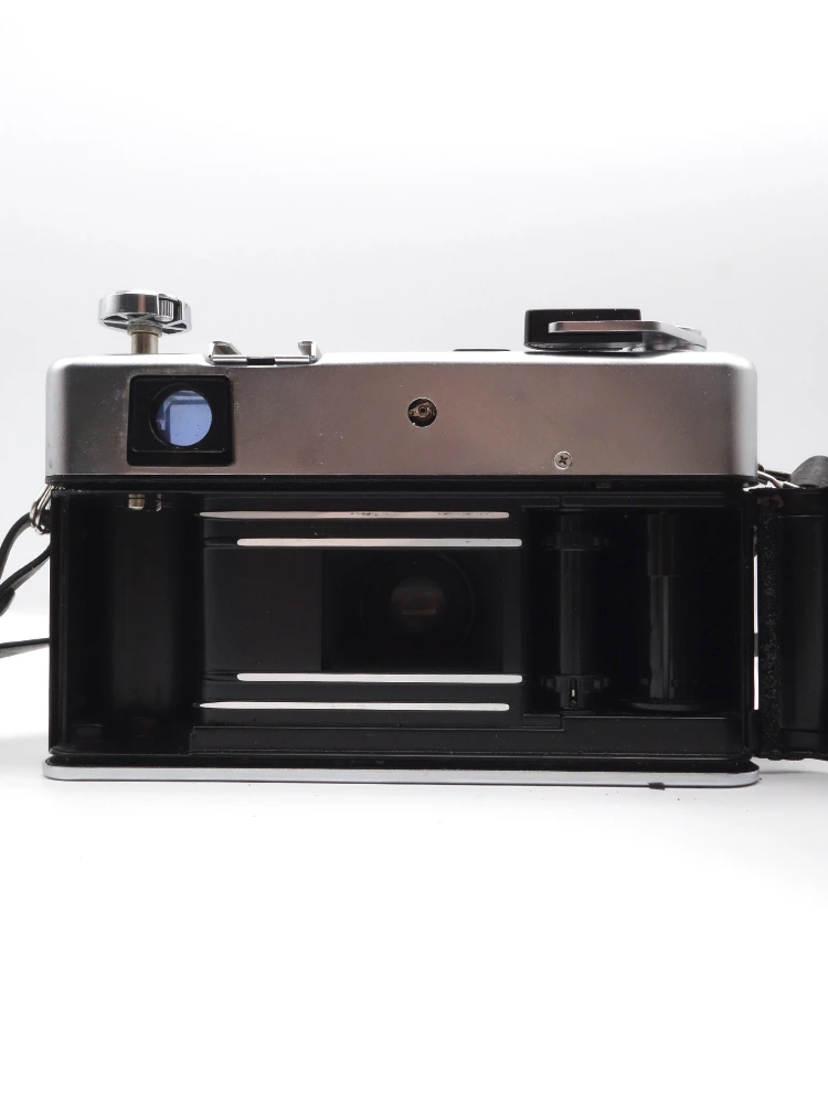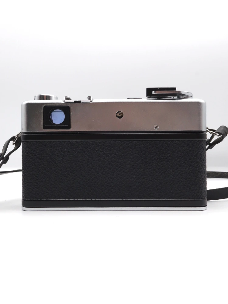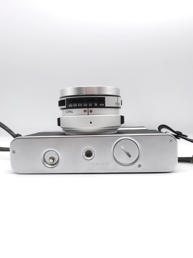 Détail cosmétique : traces d’usures liées à l’age. Manque d’un petit cache (voir photo dos du boitier, à droite du viseur).