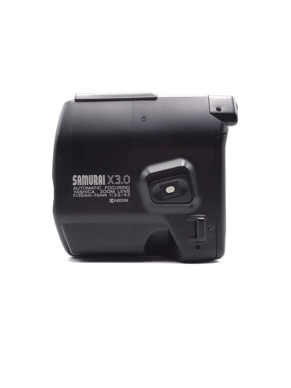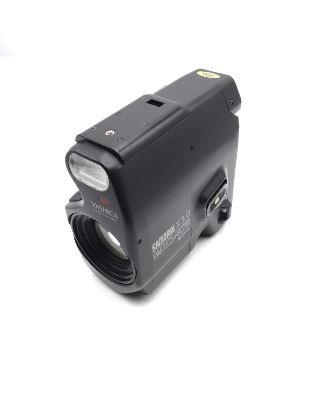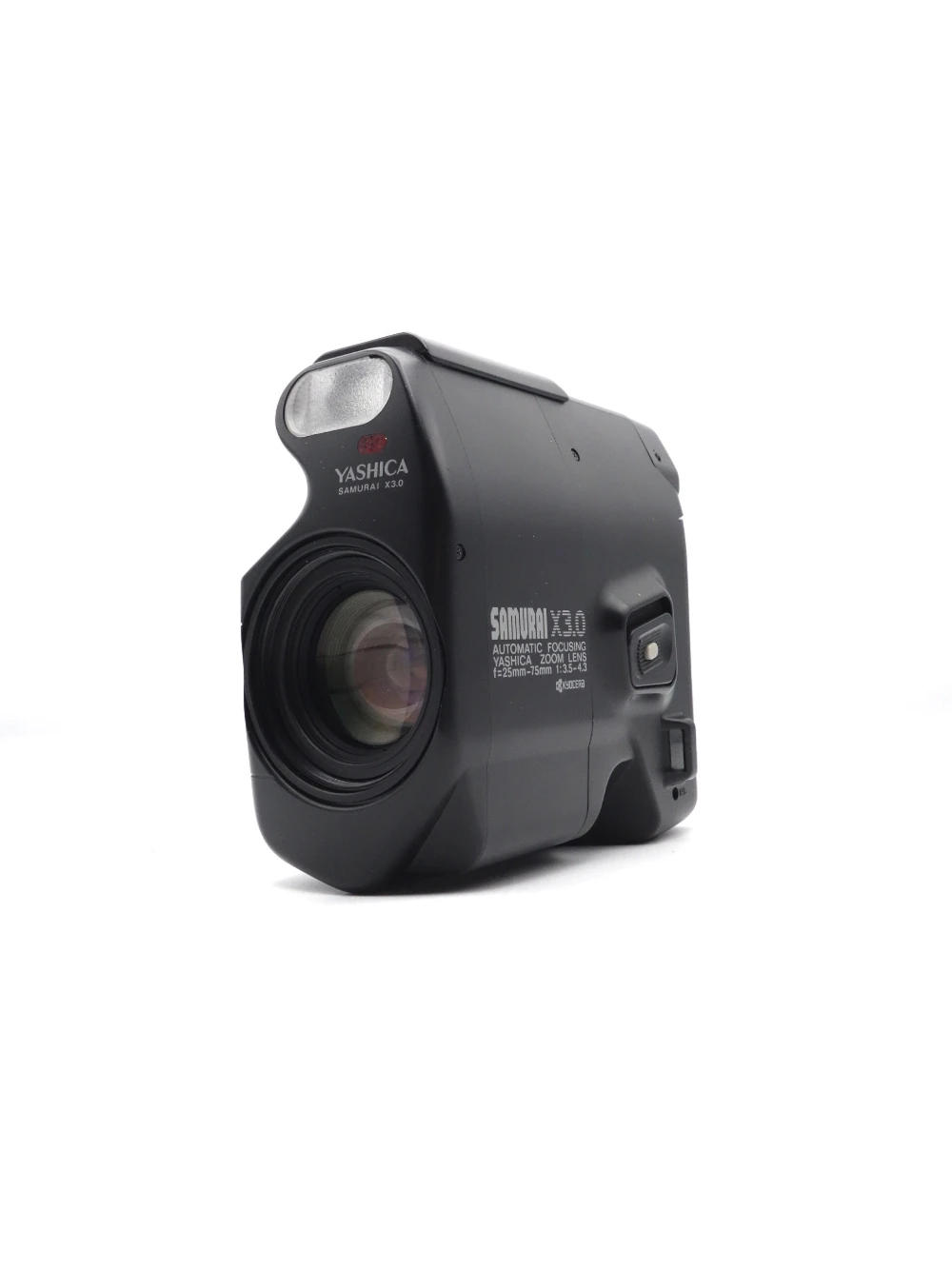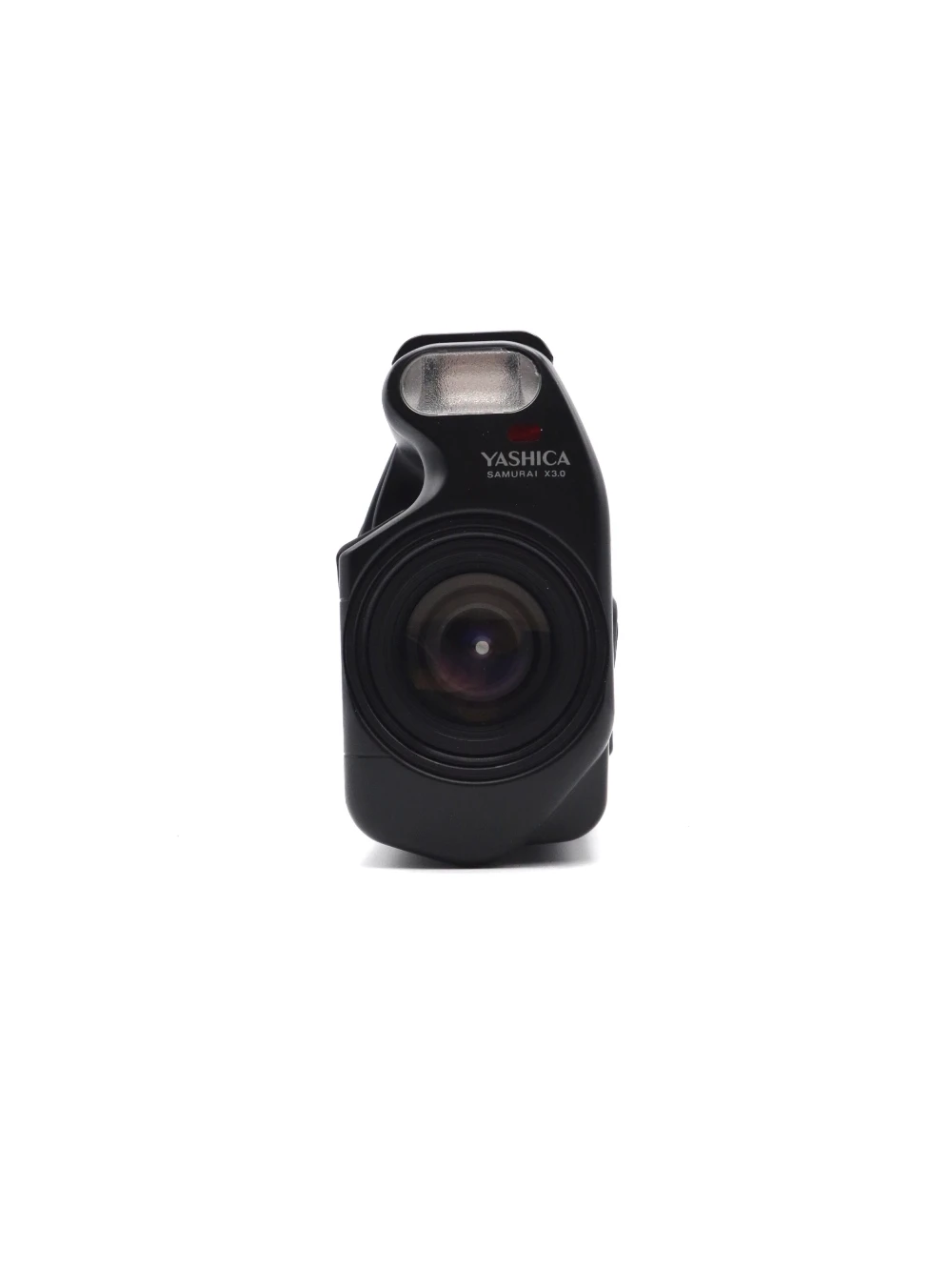 Être un appareil photo argentique demi-format, c’est déjà appartenir à un cercle restreint. Y ajouter un autofocus réduit considérablement la liste, mais disposer en prime d’une visée reflex relève de la rareté absolue. C’est précisément ce qui définit le Yashica Samurai X3.0 : un produit original dont la silhouette ergonomique rappelle celle des caméscopes d’antan.