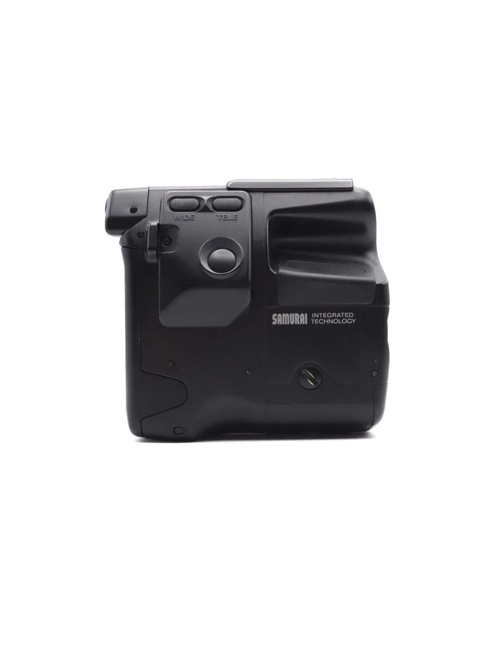 Tout comme le Konica Recorder, le Yashica Samurai X3.0 privilégie l’orientation paysage par défaut en faisant défiler la pellicule de haut en bas. Ce choix le distingue de la plupart des boîtiers demi-format qui, en raison d’un défilement horizontal, imposent nativement un cadrage portrait. Cet appareil atypique gère automatiquement l’exposition et propose un zoom performant, équivalent à un 35-105 mm en plein format.
